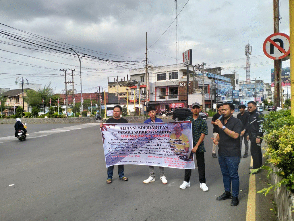 Lubuklinggau, PesirahNews.co.id — Aksi solidaritas terhadap sopir mobil pengangkut kerupuk, Meo Tri Susanto, terus bergulir. Pada Jumat (16/01/2026), mahasiswa bersama masyarakat Kota Lubuklinggau menggelar aksi donasi penggalangan dana di Simpang RCA, Kota Lubuklinggau.